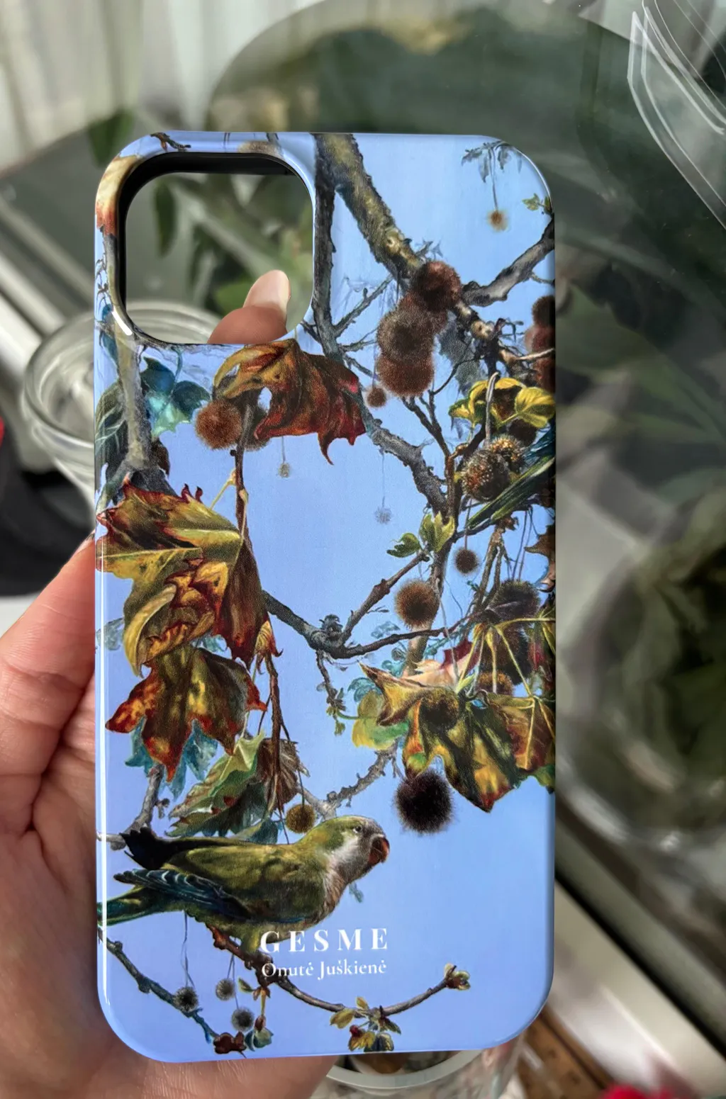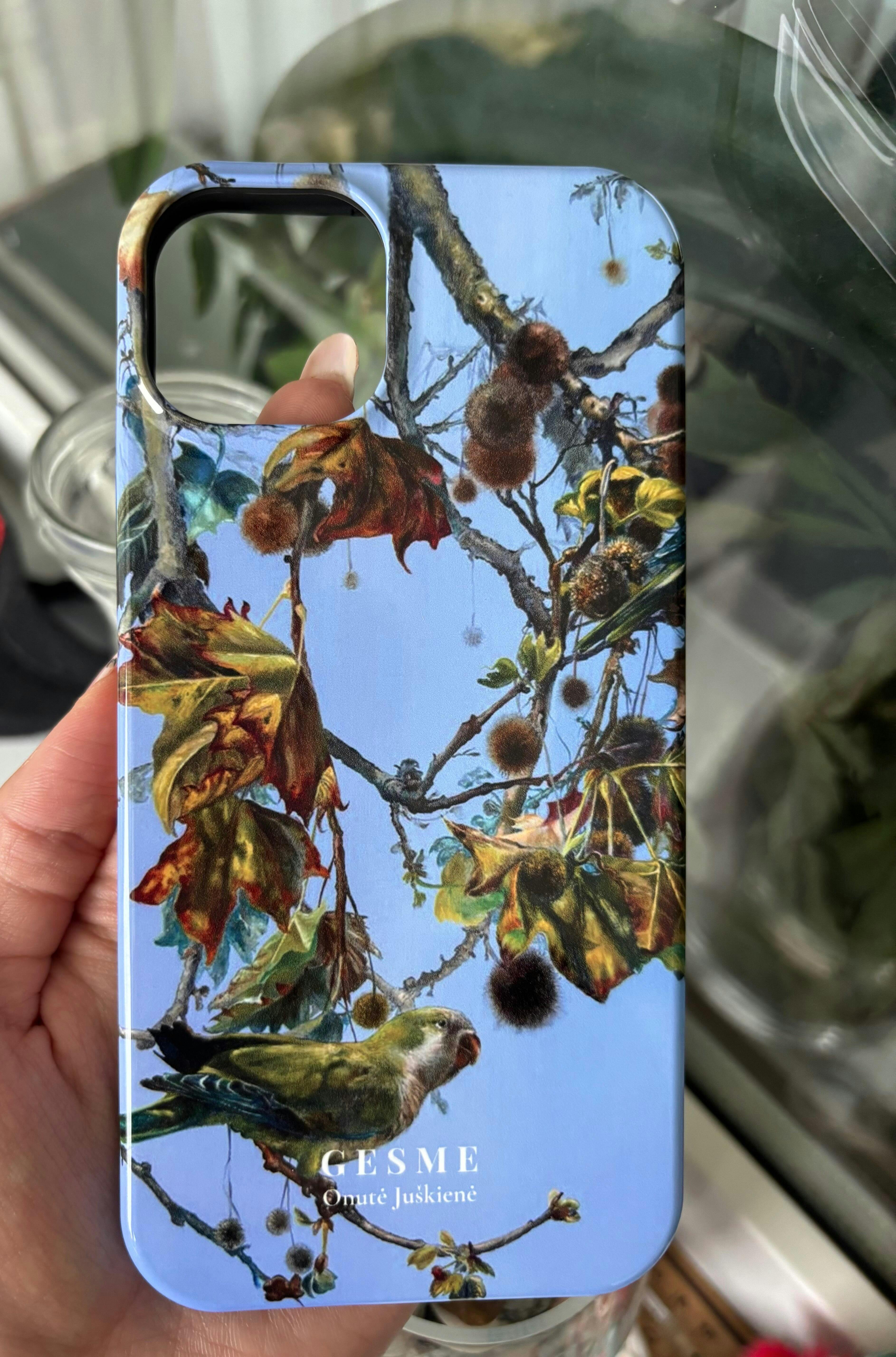 Onutės Juškienės „Dangaus Aukštybėse“ - tai akimirka, kai paukščiai tampa mūsų svajonių palydovais, o dangaus mėlis - sielos ramybės fonas. Gyvybingos šakos, rudens lapai ir plunksnuoti gyventojai susijungia į pasakojimą apie laisvę, skrydį ir akimirkos grožį.