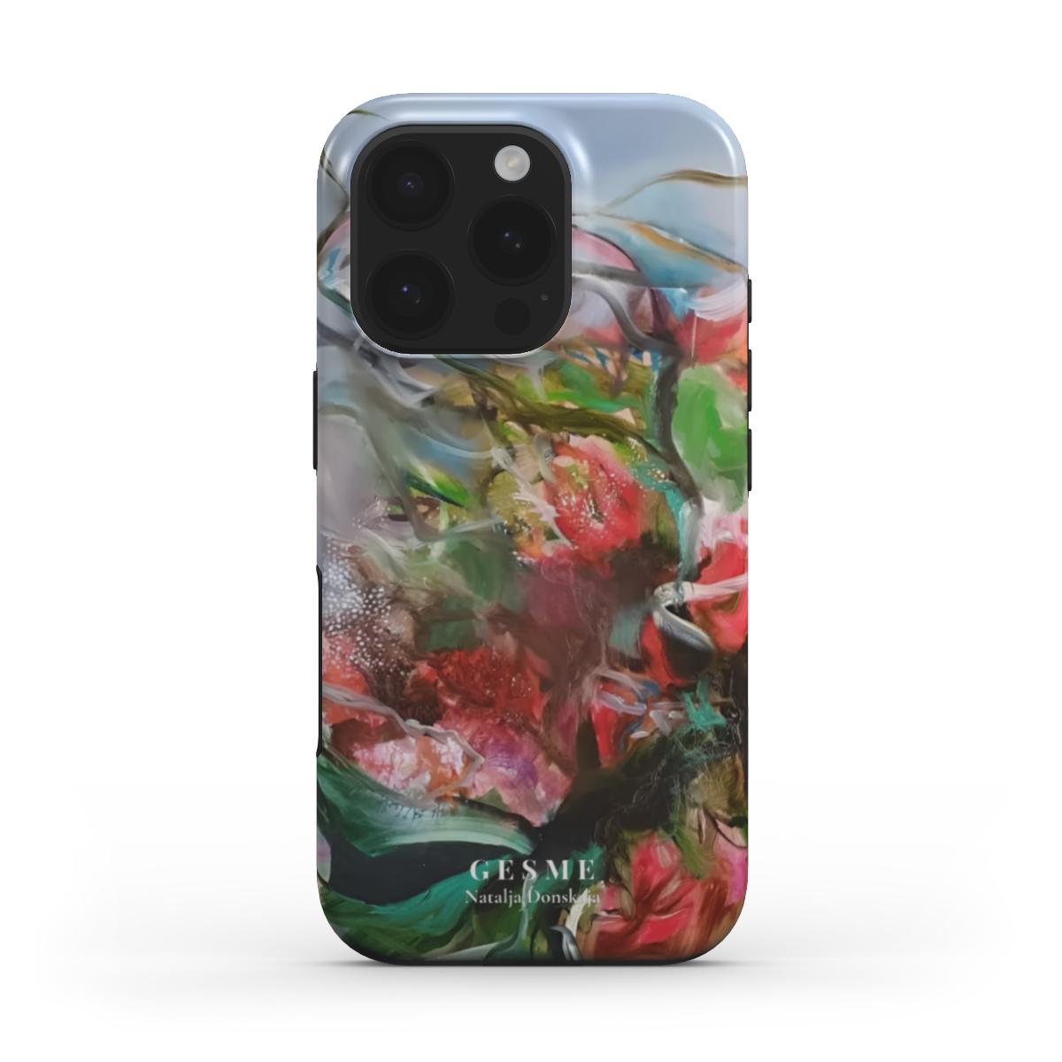 Nataljos Donskajos "Floristės idėja" – tai abstrakčios tapybos ir gamtos sintezė, kurioje spalvos susilieja į organišką, pulsuojančią formą. Ryškūs raudoni ir žali tonai primena gėlių puokščių žaismą, o minkštos, besiliejančios linijos suteikia judesio pojūtį. Šis dizainas perteikia floristo kūrybos akimirką – tą neapčiuopiamą momentą, kai idėja virsta tikrove.