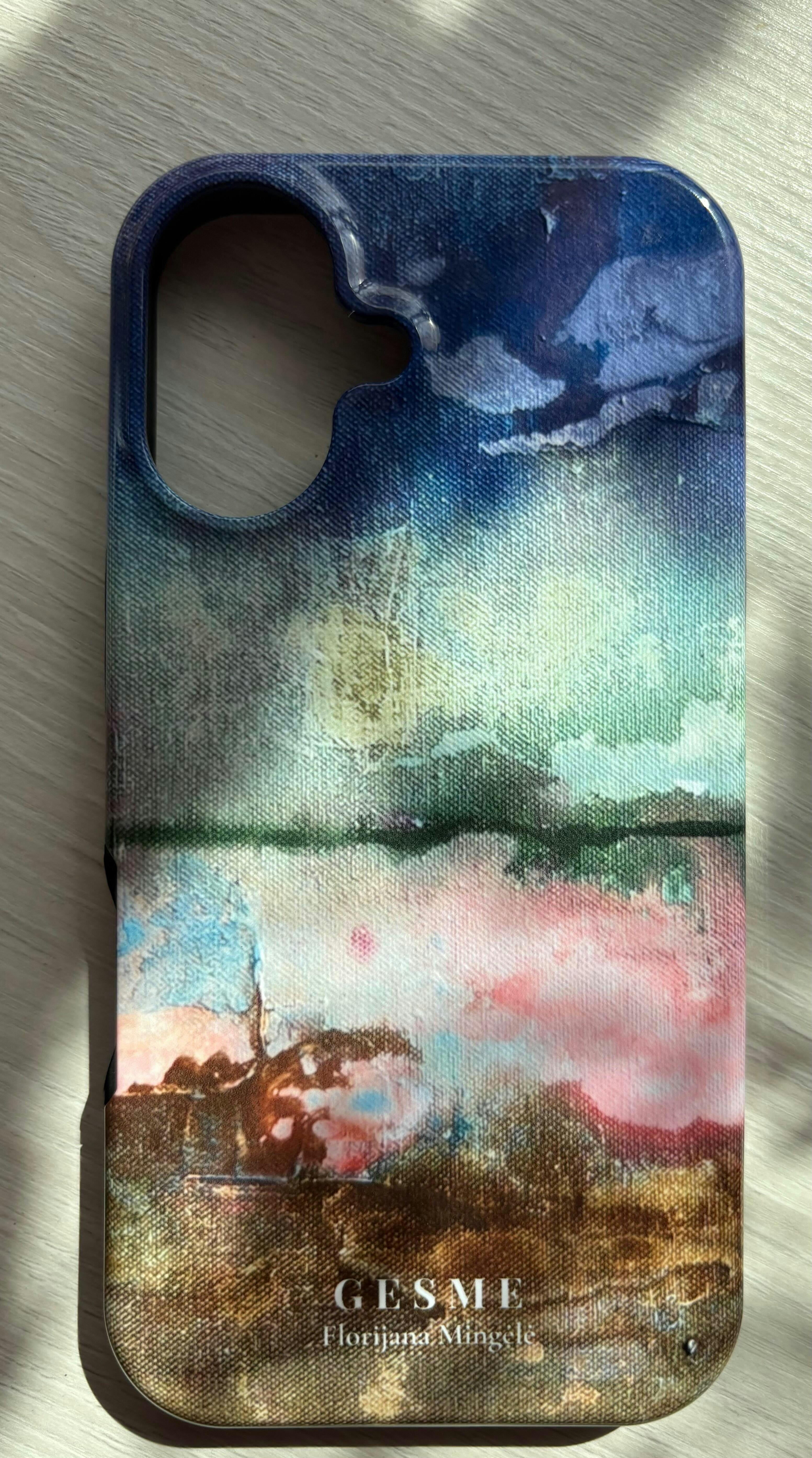 Florijanos Mingėlės kūrinys „Horizontas“ perteikia ramybės ir begalybės pojūtį. Subtilūs mėlynos, žalios ir žemės spalvų potėpiai primena besikeičiančią gamtą ir horizonte susiliejančius elementus. Šis dizainas – tarsi atokvėpis nuo kasdienio skubėjimo, kviečiantis į tylų, svajingą pasaulį.