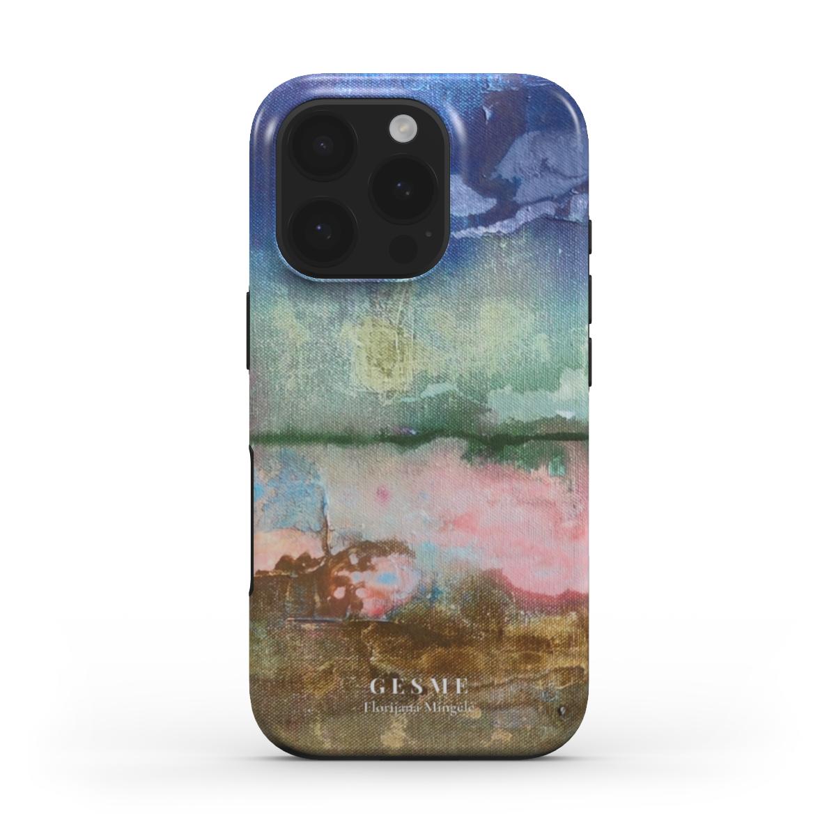 Florijanos Mingėlės kūrinys „Horizontas“ perteikia ramybės ir begalybės pojūtį. Subtilūs mėlynos, žalios ir žemės spalvų potėpiai primena besikeičiančią gamtą ir horizonte susiliejančius elementus. Šis dizainas – tarsi atokvėpis nuo kasdienio skubėjimo, kviečiantis į tylų, svajingą pasaulį.