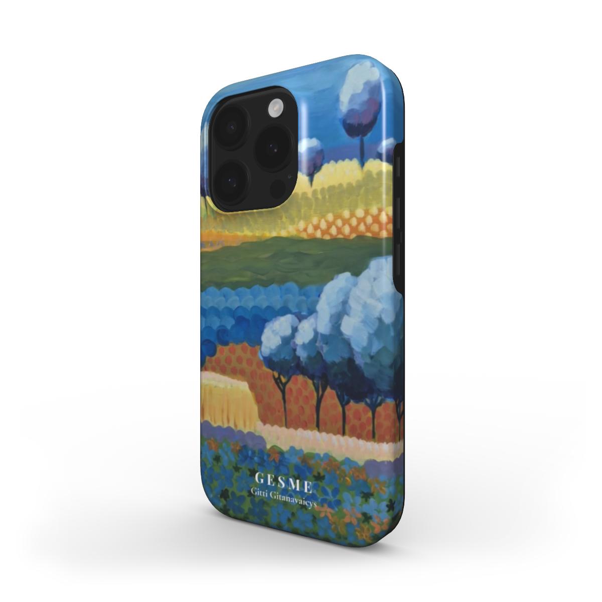 „Kitoje Upės Pusėje“ atsiveria svajonių peizažas - ritmingi spalvų potėpiai, medžių siluetai ir ramiai banguojanti žemės bei dangaus harmonija. Tai kvietimas mintimis perplaukti į pasaulį, kuriame vyrauja ramybė ir spalvų muzika.