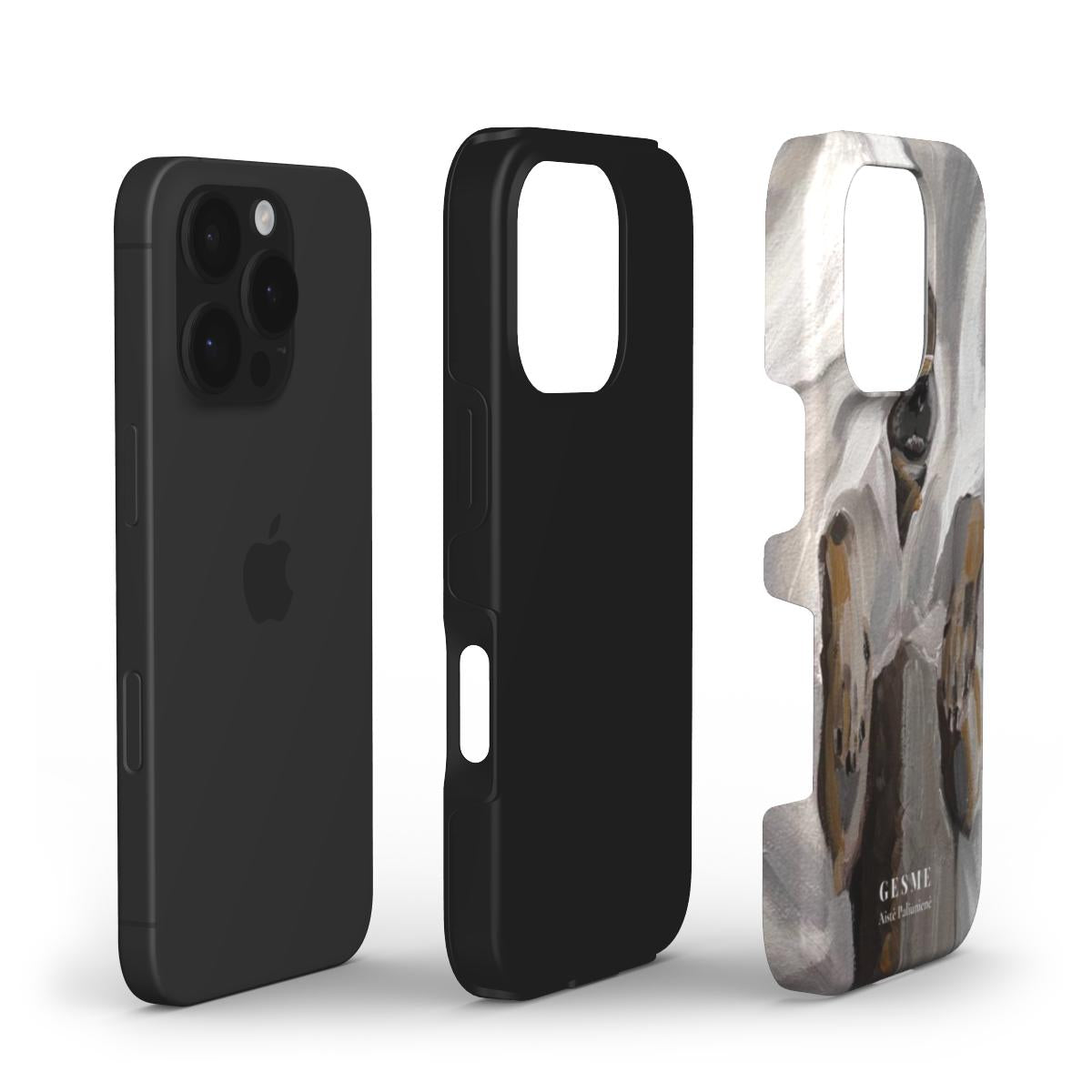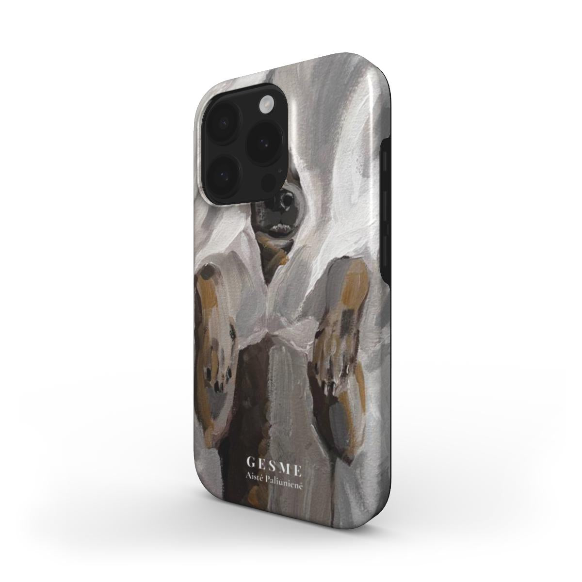 Ramybės ir laukinės dvasios kontrastas išreikštas žemiškais, sodriais potėpiais. Aistės Paliūnienės „Miegantis Medžiotojas“ - tai subtilaus meninio stiliaus pavyzdys, kur tekstūra kuria gilų, beveik taktilinį vaizdą. Dėklo dizainas išskirtinis ir paslaptingas - traukia žvilgsnį savo neįprasta tyla.
