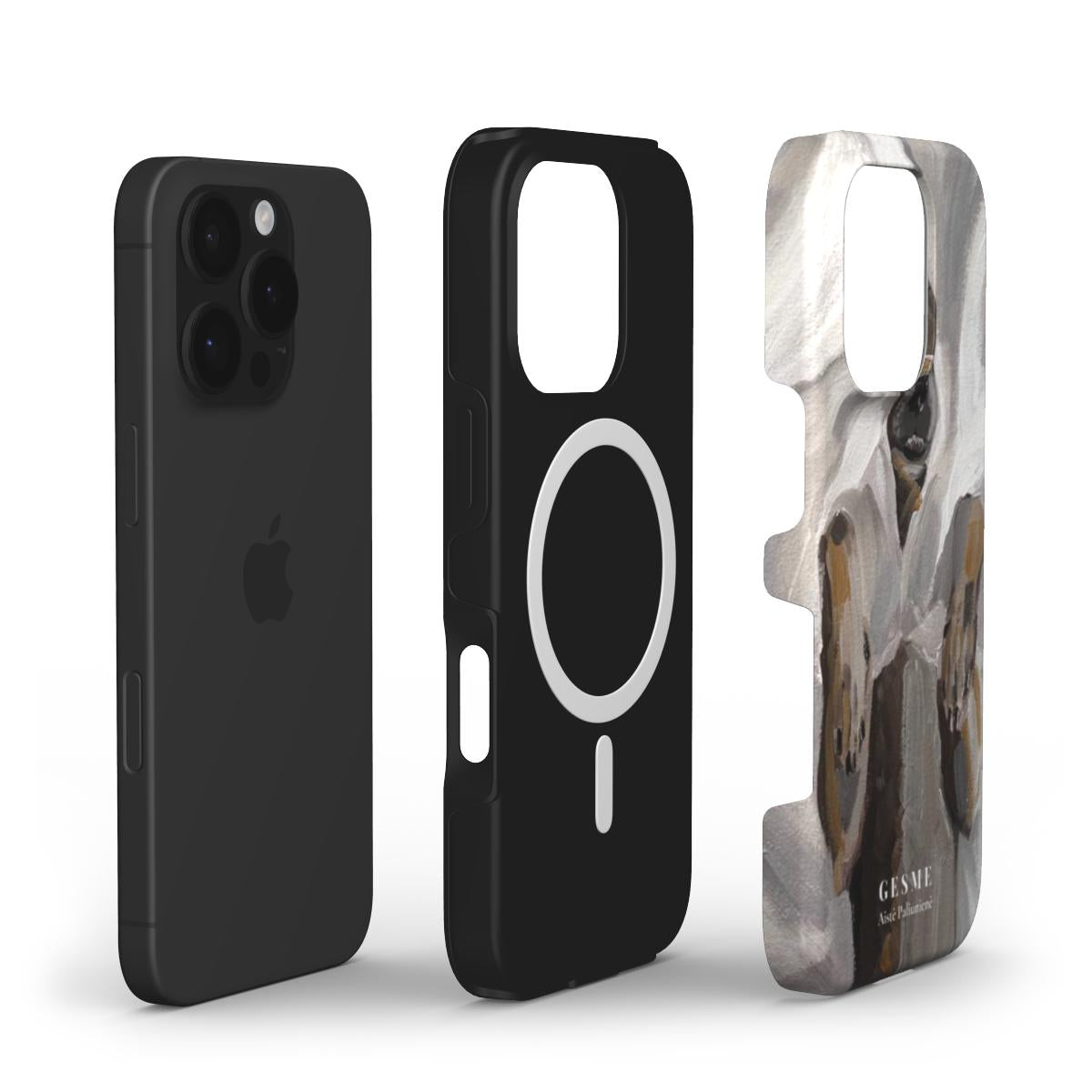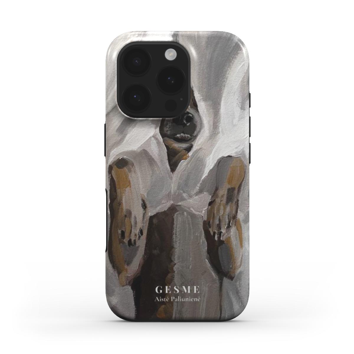 Ramybės ir laukinės dvasios kontrastas išreikštas žemiškais, sodriais potėpiais. Aistės Paliūnienės „Miegantis Medžiotojas“ - tai subtilaus meninio stiliaus pavyzdys, kur tekstūra kuria gilų, beveik taktilinį vaizdą. Dėklo dizainas išskirtinis ir paslaptingas - traukia žvilgsnį savo neįprasta tyla.